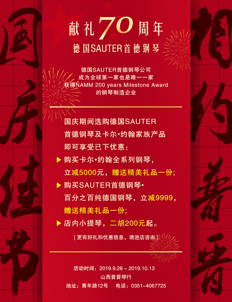 2016年11月10-12日,普晉琴行與九歌琴行將聯(lián)袂為省城的古典音樂愛好者奉上一場經(jīng)典的視聽盛宴,我們有幸通過貝希斯坦鋼琴官方邀約到了古典音樂界的傳奇大師希普林•卡薩利斯,將在三天內(nèi)舉辦涵蓋音樂會、大師課、藝術(shù)沙龍等多種形式的音樂活動,這也是繼“2016 晉歌音樂藝術(shù)季”后普晉琴行攜手九歌琴行又一輪重磅活動。
